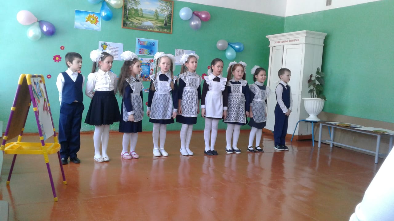 На мероприятии присутствовали родители, директор, завуч шолы и ученики 1,2 классов. Зал был празднично украшен.