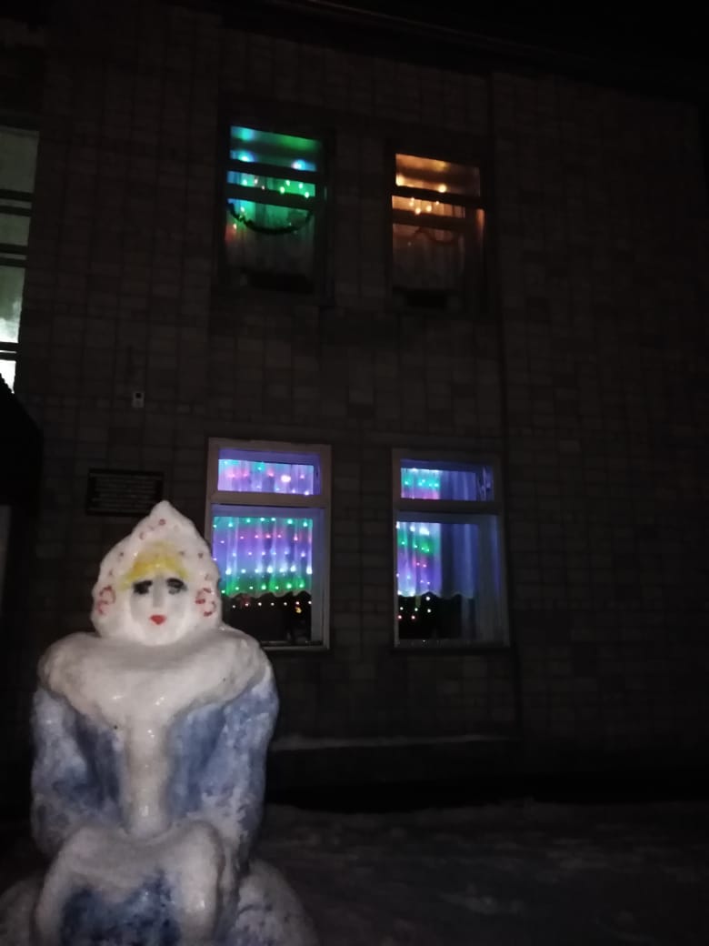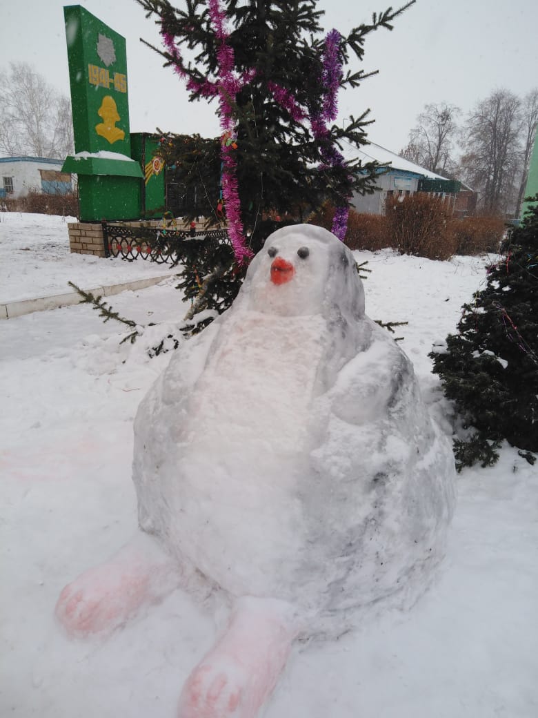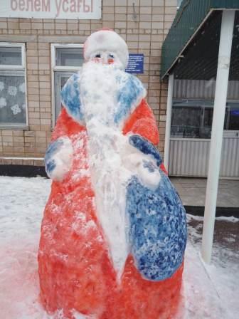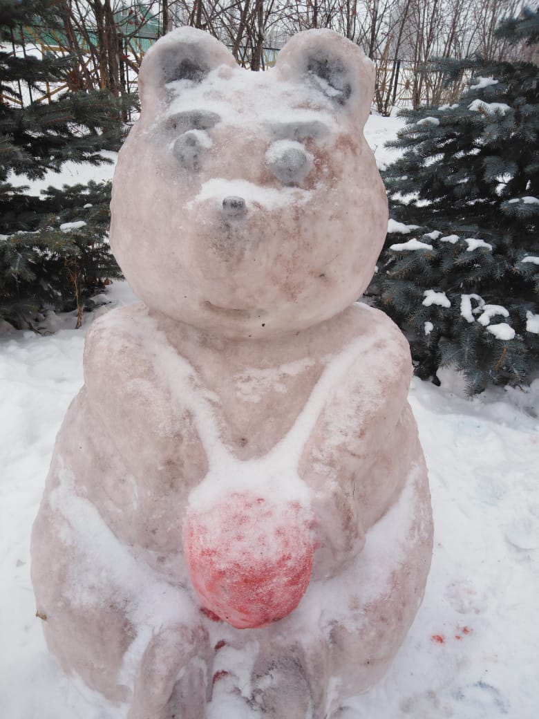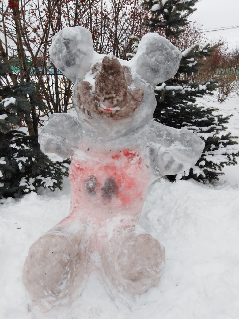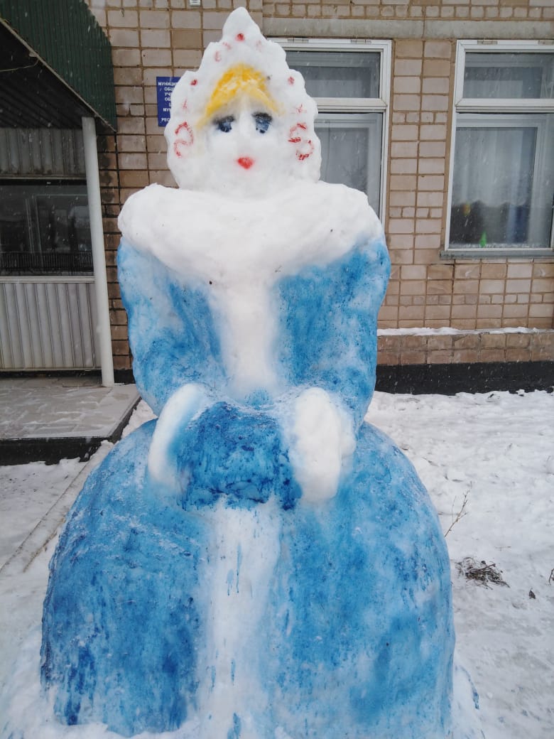 Школьный двор украсили фигурами из снега.