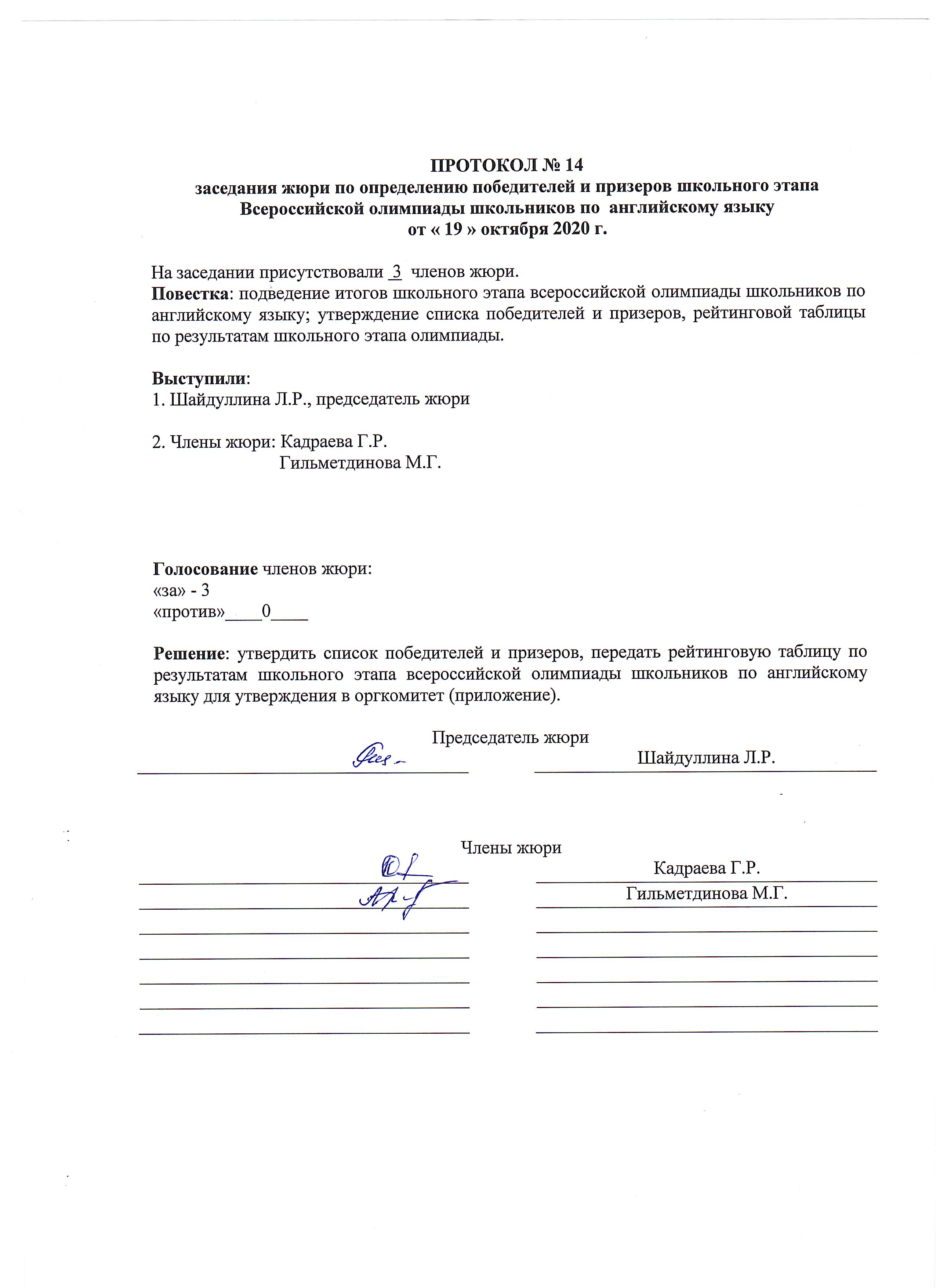 Протокол ВОШ ШЭ по английскому языку